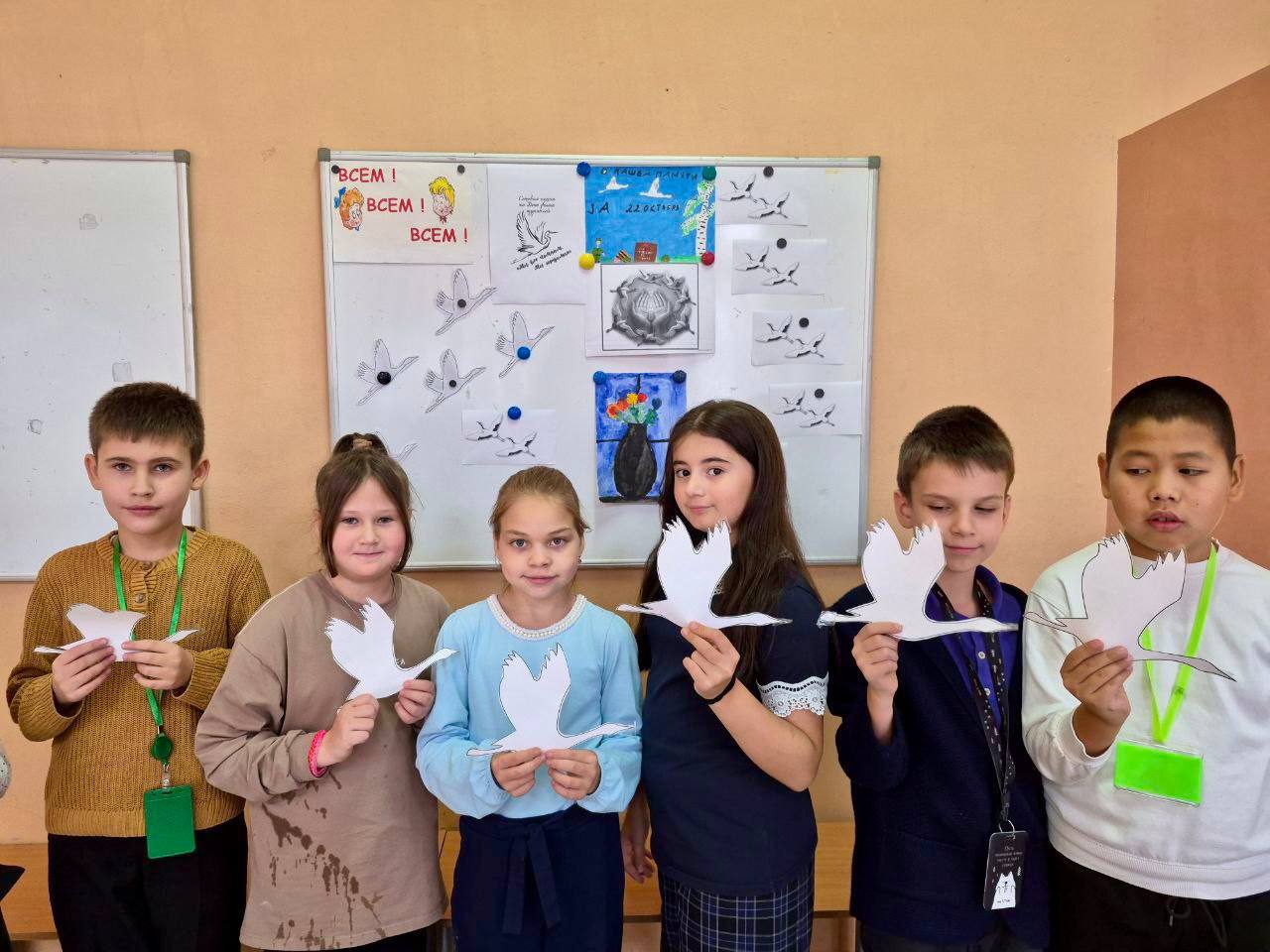На уроках звучали строки Расула Гамзатова, чьё стихотворение «Журавли» стало символом этого дня. Ребята говорили о подвиге, о памяти, о том, что настоящая сила — в верности своей истории.