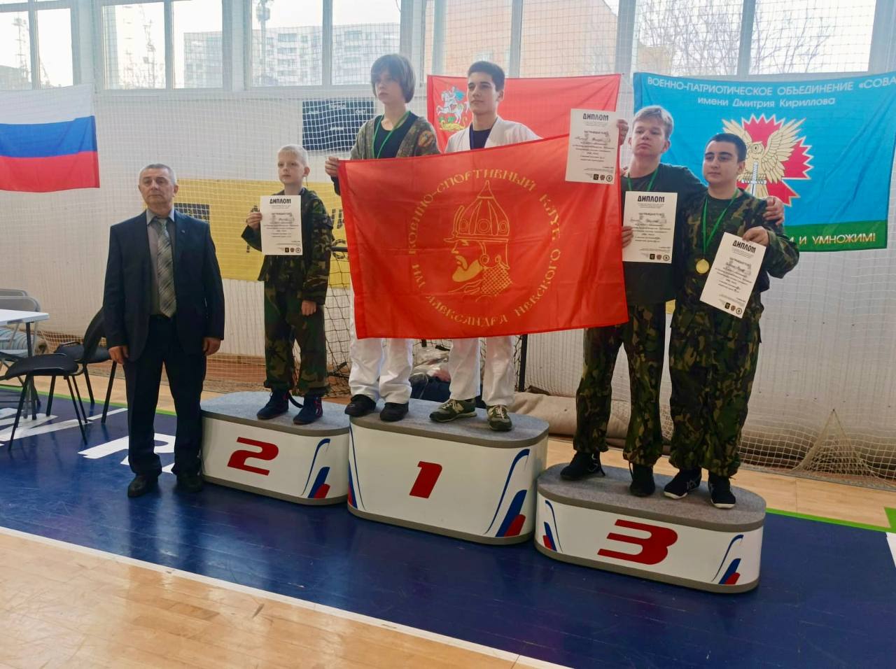На борцовский ковер вышли сильнейшие команды военно-патриотических клубов из Москвы, Мытищ, Химок, Одинцово, Клина и Калуги. В напряжённой борьбе наши ребята —Андрей, Кирилл, Ренат и Владислав — показали высокий уровень подготовки, силу воли и настоящий спортивный характер, заняв призовые места в своих категориях!